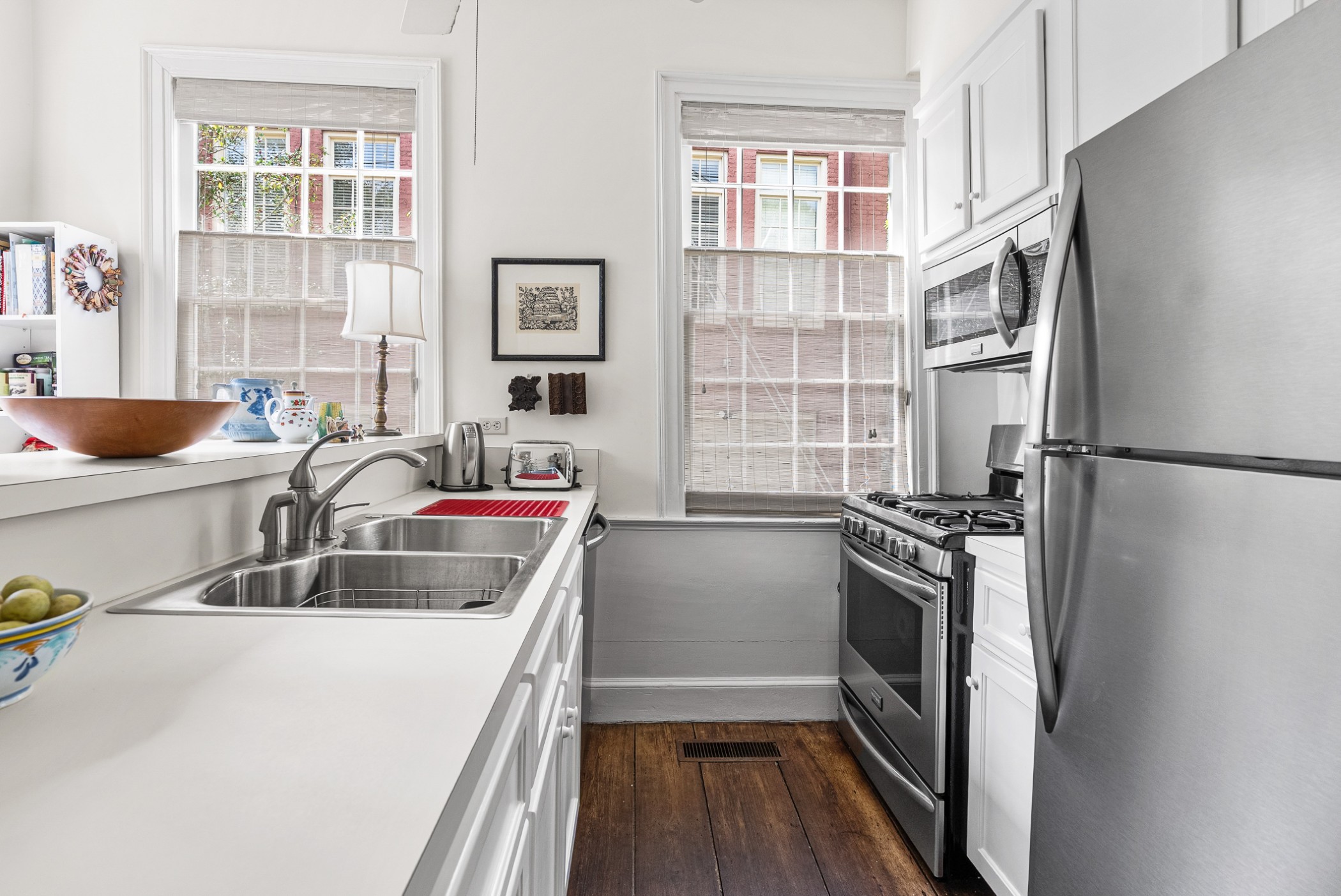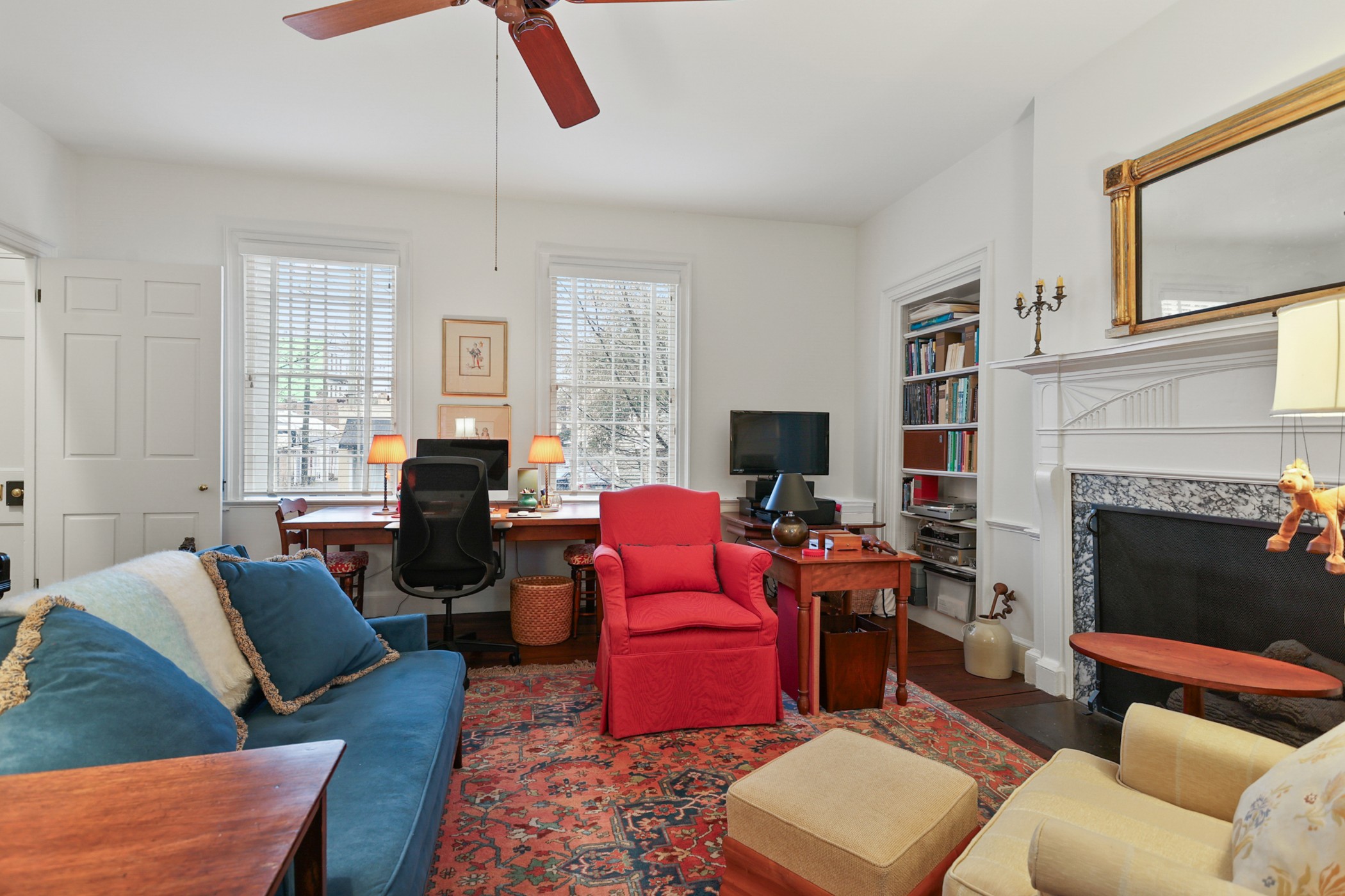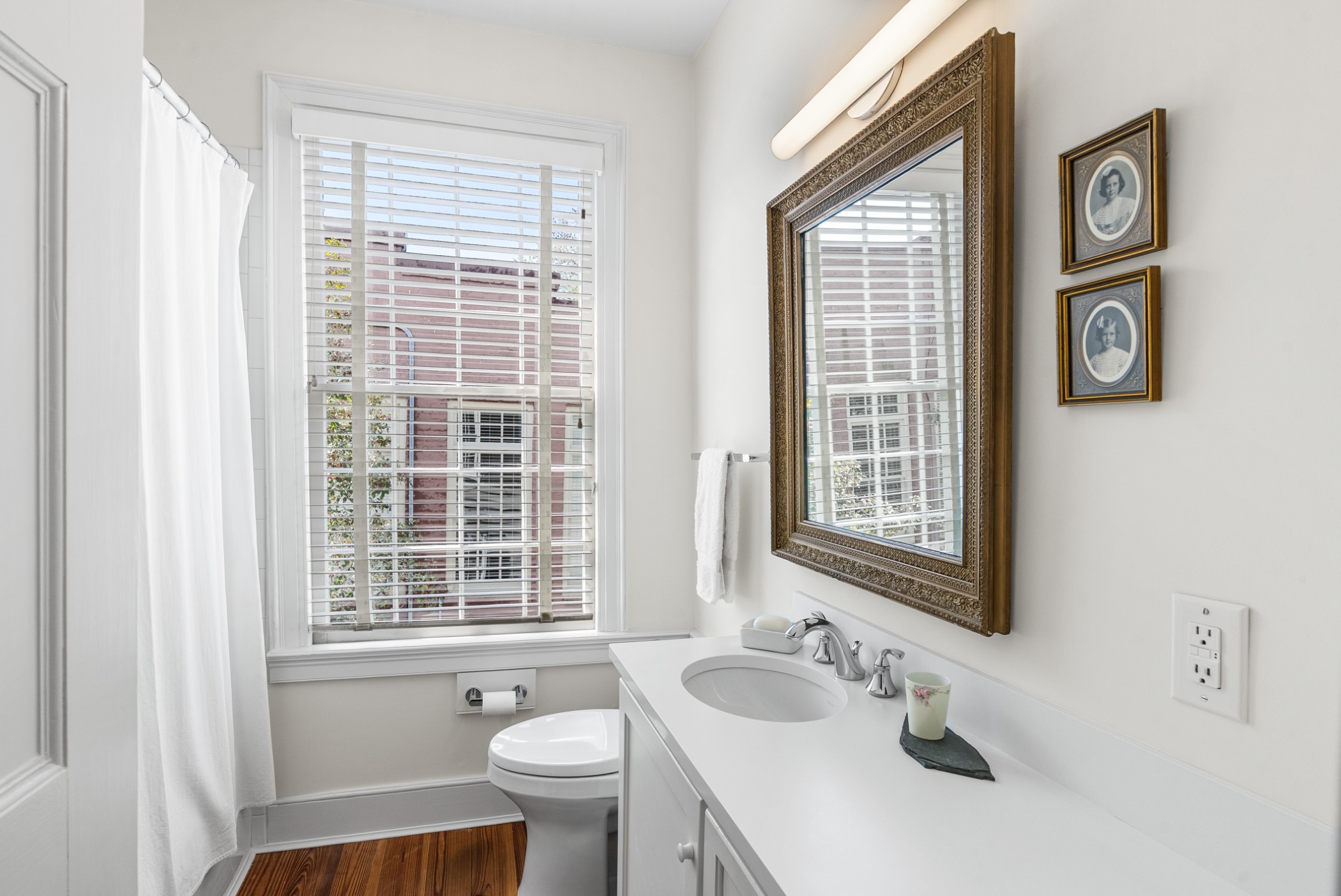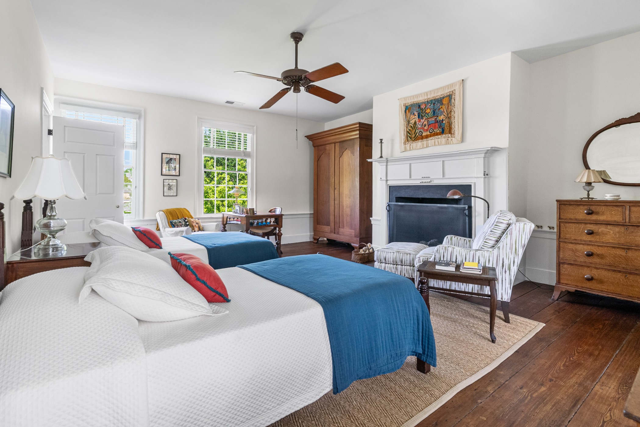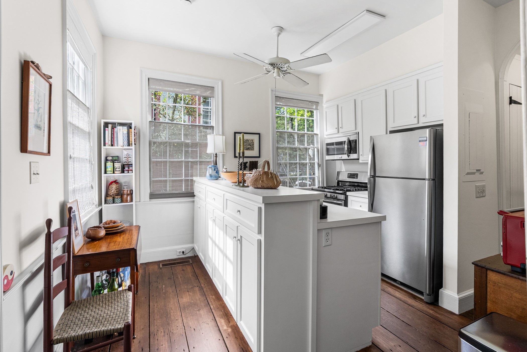 The original floorplan was restored except in the southern back quadrants, which were configured to house the modern conveniences of a kitchen and half-bath on the first floor, and a full-bath area, washer and dryer, and a large walk-in closet on the second floor. A modern, Federal-style double-porch, appropriate for the house and typical for Savannah, was added off the back of the house during the 1990 restoration to create additional living space. The cottage has a courtyard and off-street parking.