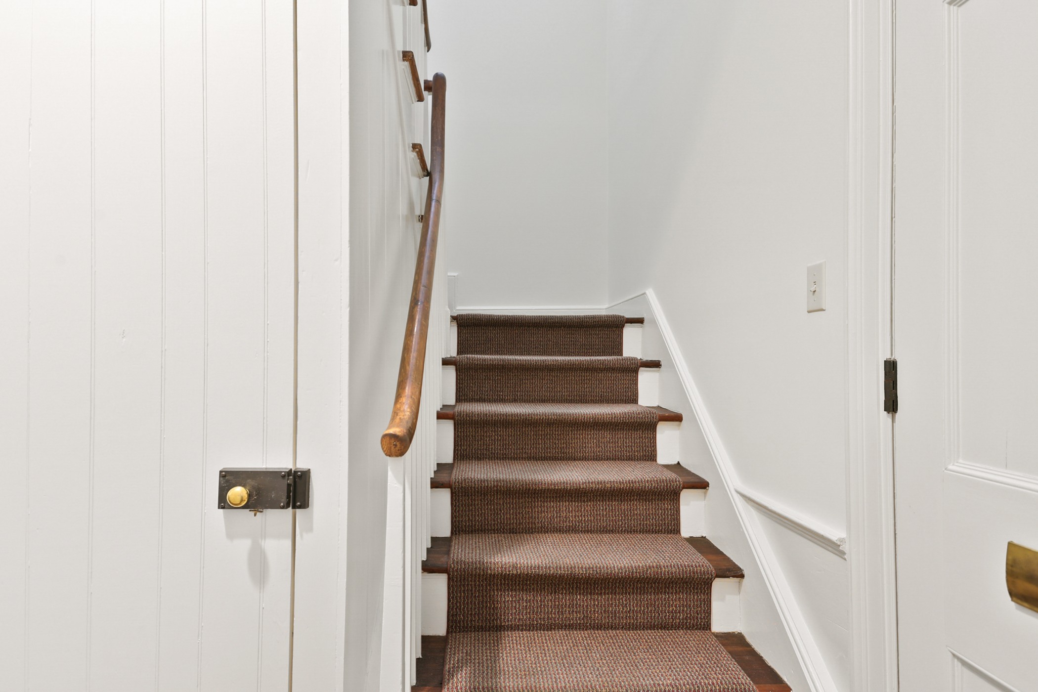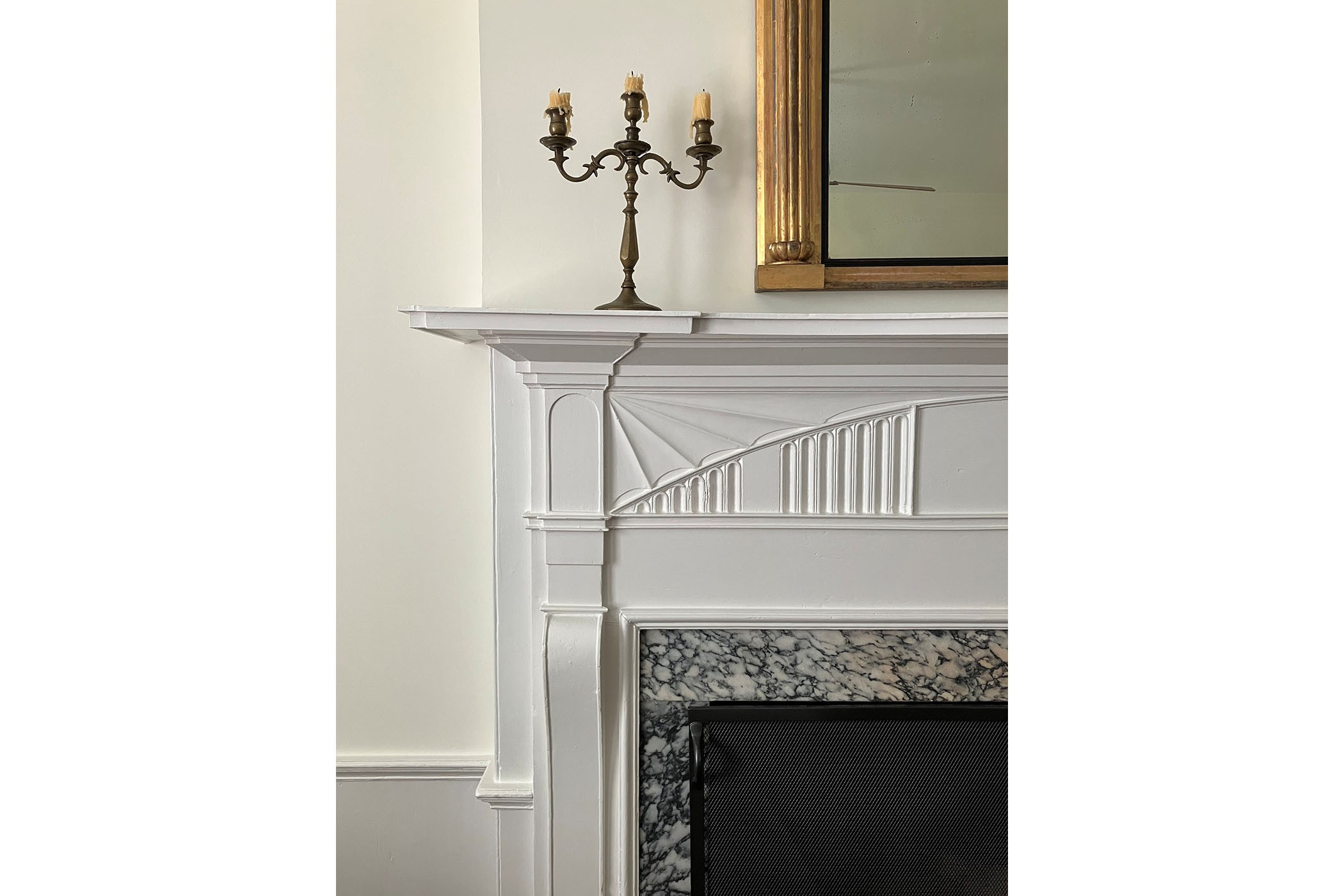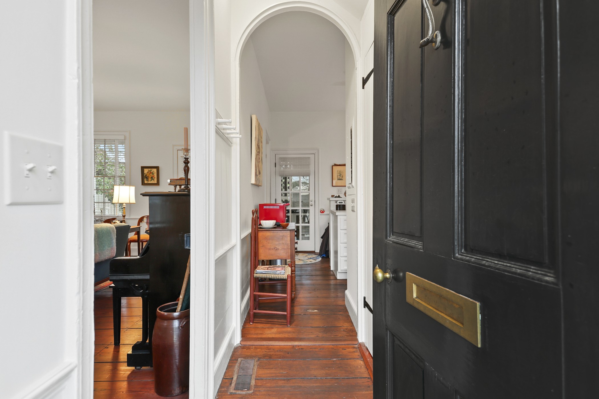 The house has substantial original fittings including rare 12 over 12 window sashes, two mantels, the staircase, a lovely archway with a lantern hook in the front hall, most of the woodwork, with wainscoting and pine flooring throughout.