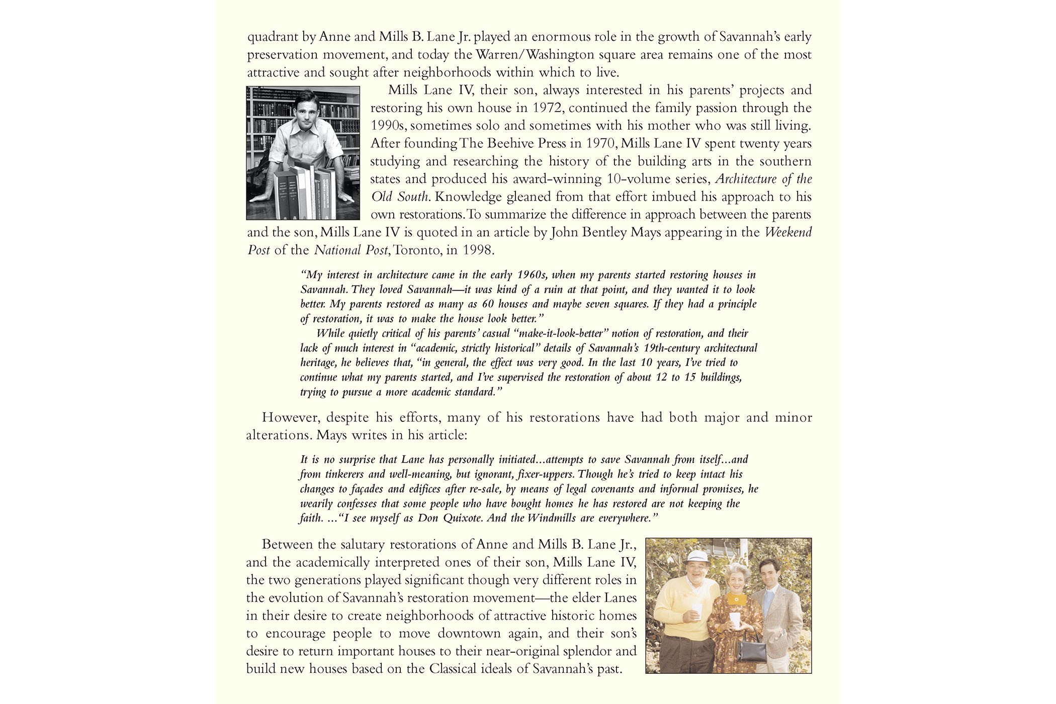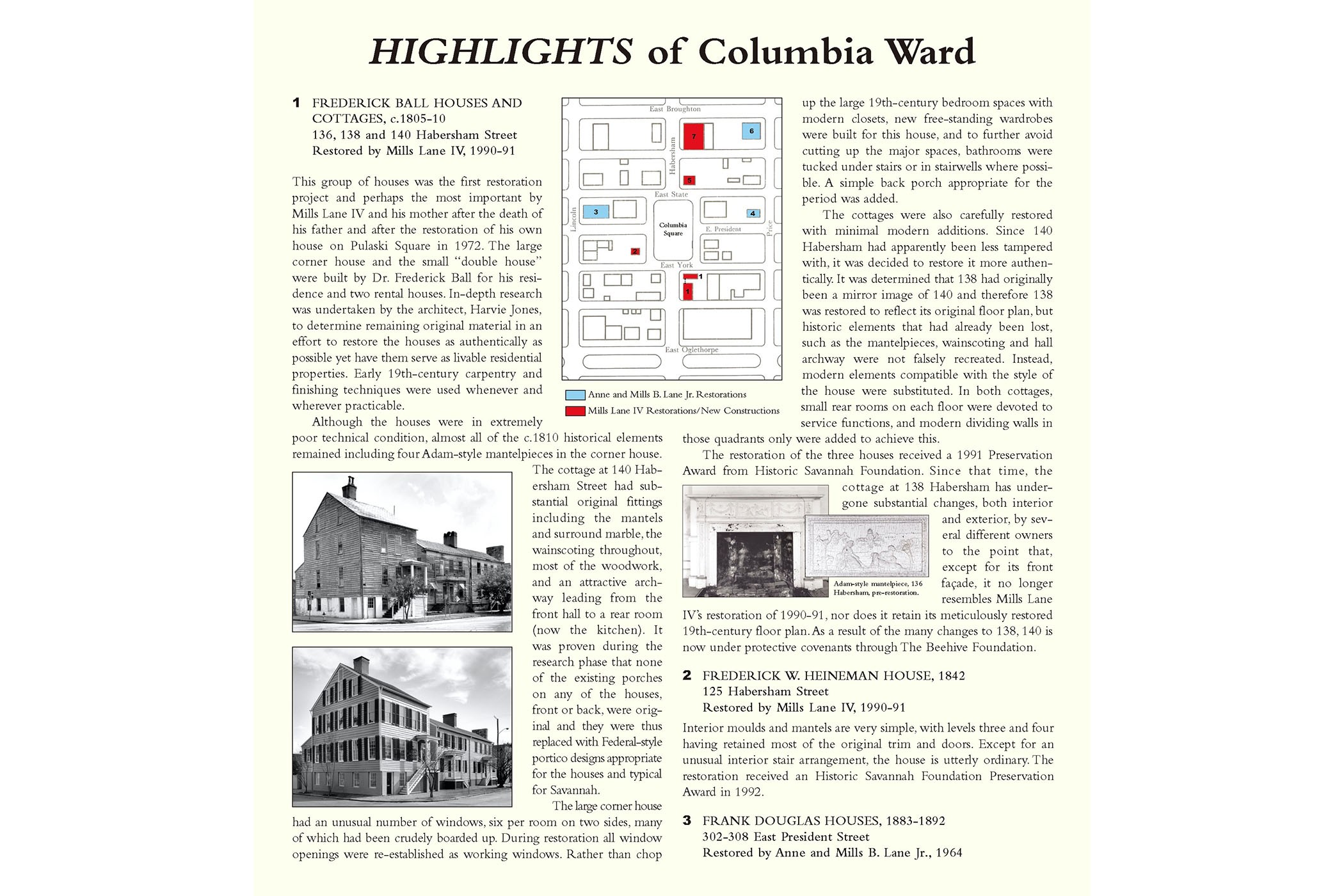 Full documentation of the restorations of the three Frederick Ball Houses, including plans, photographs, and correspondence, is on file at The Beehive Foundation in Savannah, Georgia.